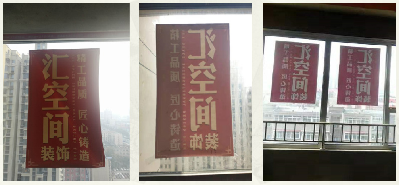 公司窗貼要正確規范,三室6張(別墅根據實際情況定制),需張貼于南和北窗戶的正中,字體向外橫平豎直(據小區物業管理執行)